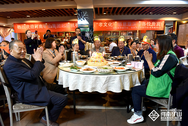 今天,恰好有四位老人生日,公司特意安排了生日蛋糕和長(zhǎng)壽面。